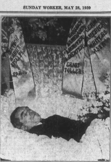 What people did remember of Toller’s demise was the bad vibrations surrounding his suicide and funeral. It was a week that elicited a spasm of rage, guilt, anger, grief, and despair in left-wing politics around the world. This was especially true in New York City, where German political emigres already were starting to forge their new lives in a strange metropolis. Toller's death was a topic better avoided altogether than recalled in any way.